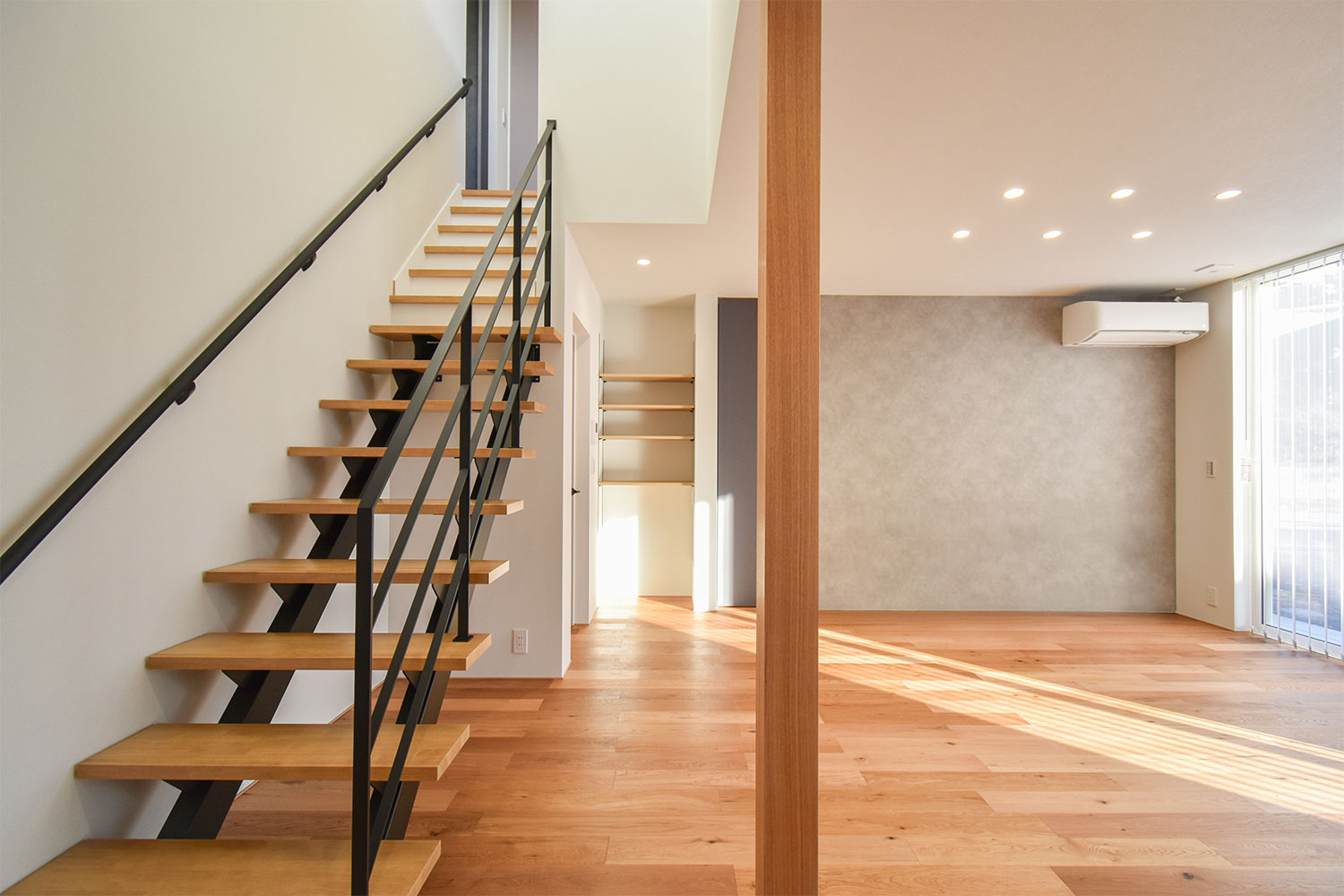 スケルトン階段や化粧柱のメリハリで視線から楽しむ
