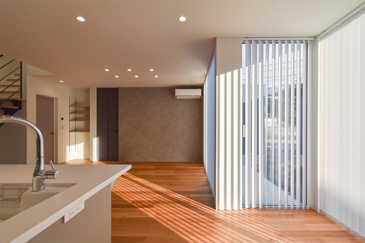 カーテンを開ければ開放的、閉めていても陽の差し込みが美しい空間。