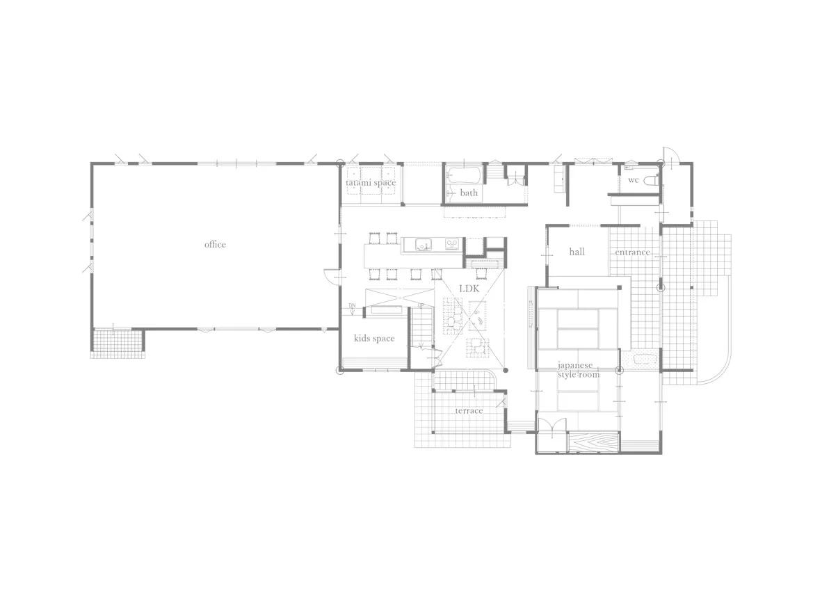 カラーのタタミが和の落ち着きをモダンな雰囲気を作ります。
