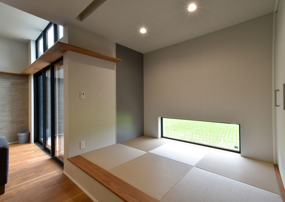 リビングに寄り添うタタミスペースは、落ち着きとくつろぎを添える空間。ゴロンと横になったり、子どもの遊び場になったりと、多用途に活躍します。シンプルな中に和の安らぎを感じられる居場所です。