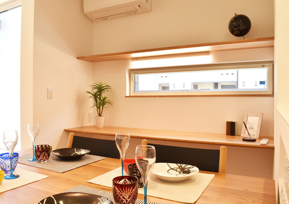 ダイニング横に設けたスタディカウンターは、家族の気配を感じながらも、ほどよく集中できる落ち着いたスペース。空間に溶け込むデザインで、暮らしに自然と馴染みます。