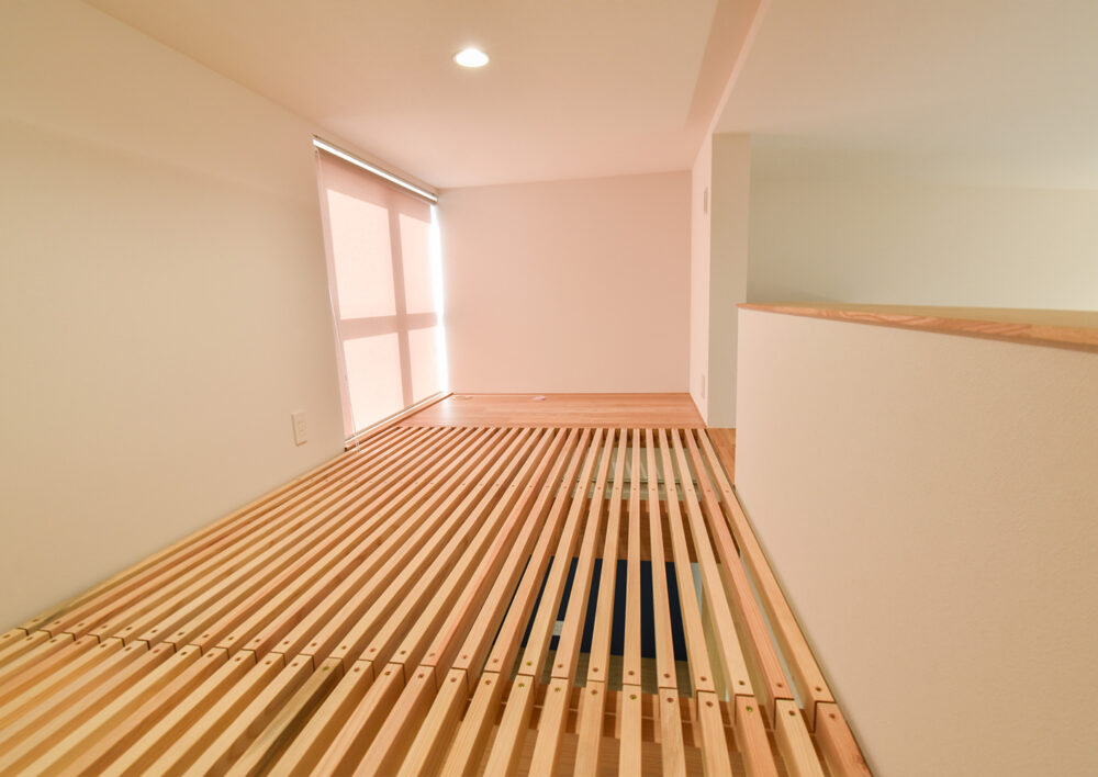 1階へ光と風を循環させる「すのこ床」を採用したロフト空間。程よい抜け感があり、どこにいても家族の気配を感じられる設計です。